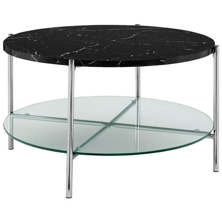32 Inch Round Coffee Table With Black Faux Marble And Chrome Legs Walmart Canada